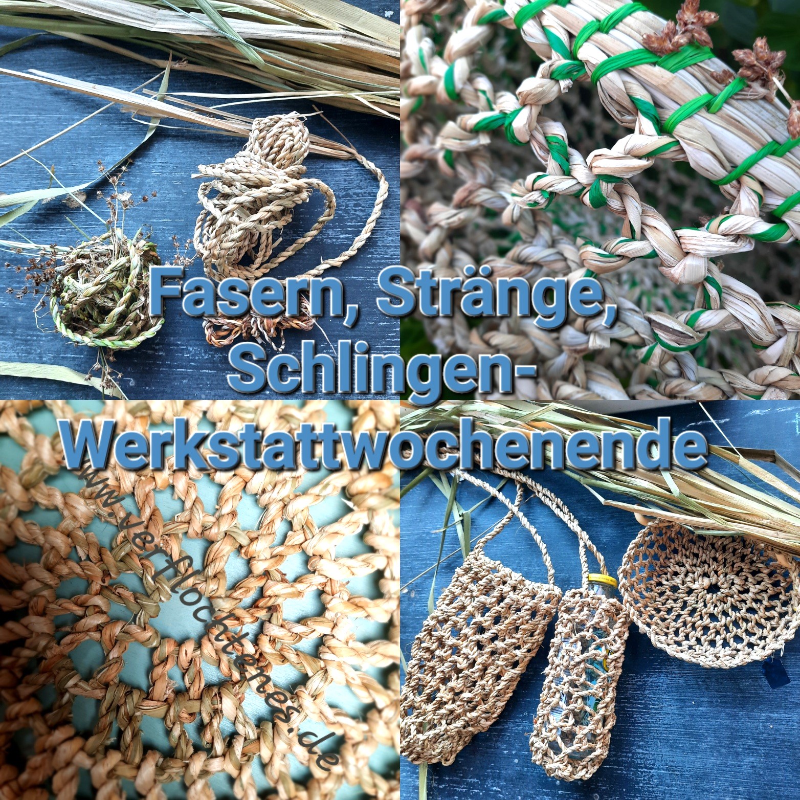 Fasern, Stränge, Schlingen - Werkstattwochenende Moorpflanzen - Das ist ein intensiver Kurs zum Kennenlernen und Verarbeiten von Pflanzenfasern für Fäden und Zwirne, zum knotenlosen Verschlingen - dem "looping" . Termin: Fr 05.06. 17 Uhr bis So 07.06.26 13 Uhr, 8 TN, Werkstatt Wolgast, Kursbeitrag incl. Material EUR 190, Übernachtungsmöglichkeiten vorhanden