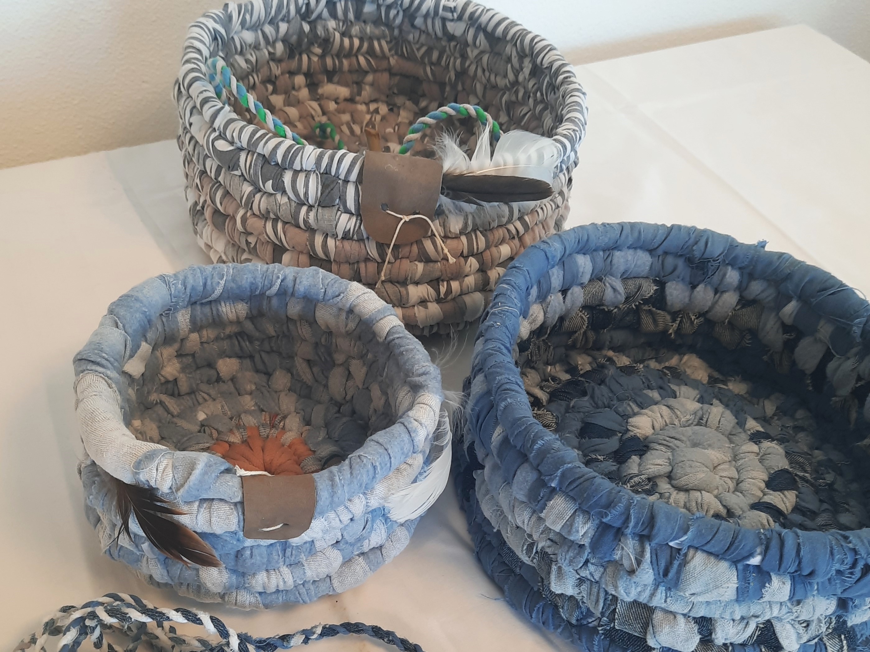 Fashion Upcycling - wir erlernen eine textile Flechttechnik und können unsere abgeliebten Kleidungsstücke in farbenfrohe praktische Alltagskörbe verwandeln - eigene Stoffe gern mitbringen ! Termin für 2026 folgt, 8 TN Kursbeitrag 30 EUR incl. Material , bitte meldet Euch per Mail an